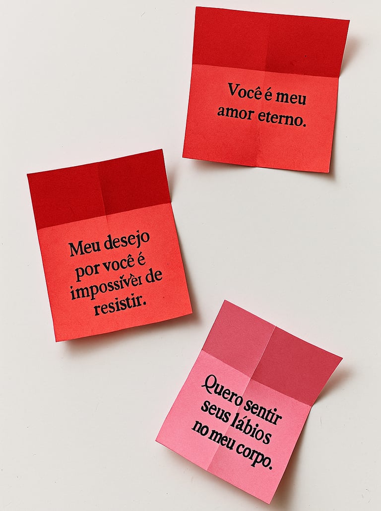Cada papelzinho é uma nova maneira de dizer “eu te amo” — com palavras que aquecem o coração, despertam desejo e fazem sorrir.